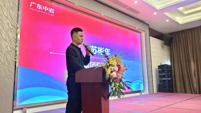 集团营销总裁苏彬年为会议指明方向:今天象征着2021年度广东中岩营销工作正式启航,广东中岩虽然是祥达集团一艘最年轻商业战舰,但是在岩板多个领域占据着先导地位,在充满商机和挑战的未知中正在驶向商业的蓝海。岩板由于规格、厚度、表面工艺的多样化,使得其应用领域和销售渠道非常广泛,在2021年围绕三方面的优势和提升。第一,找准方向,精耕细作,各品牌和销售职能部门在销售渠道和服务标准的制定中,注重优势渠道的深化和定向,每个品牌和销售部门有各自的择优专攻渠道和精准服务,在精准的目标市场中,把市场开拓和产品开发做深、做透,把特定的渠道发展成品牌的核心渠道。第二,正视和珍惜每一场展会。集团上半年将参加深圳、上海、厦门、潭洲、广州、佛山陶博会新品发布等几场大型展会,每场展会投入费用将超百万元,这既是集团在行业和市场的发声,更是我们进一步开拓视野、了解上下游、了解竞品的机会,并且在每场展会中有所提升,有所收获。第三,齐心协力做事,端端正正做人。祥达集团经过近十六年的发展,已经发展成多品牌、多板块运营的体系;希望大家能明确的是,无论是隶属哪个板块,都是集团的重要一份子,各大板块都是相辅相成、互相促进的。