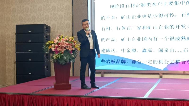 集团市场战略部总经理徐秀伟就企业2021营销重点作出概述,全面打造平台型岩板生产企业,展开多元化的合作,通过展会、终端网点的布局加强岩板品牌的发展,通过区域性的重点推广实地推动品牌落地,强调“一群人、同一目标,一条心、做好一件事”的团队合力,实现2021广东中岩营销战略的全面升级和客户帮扶。