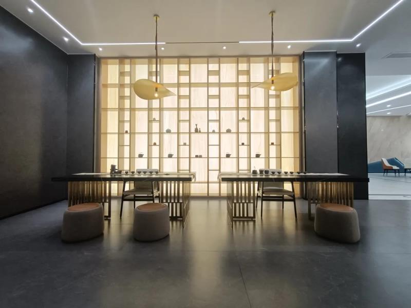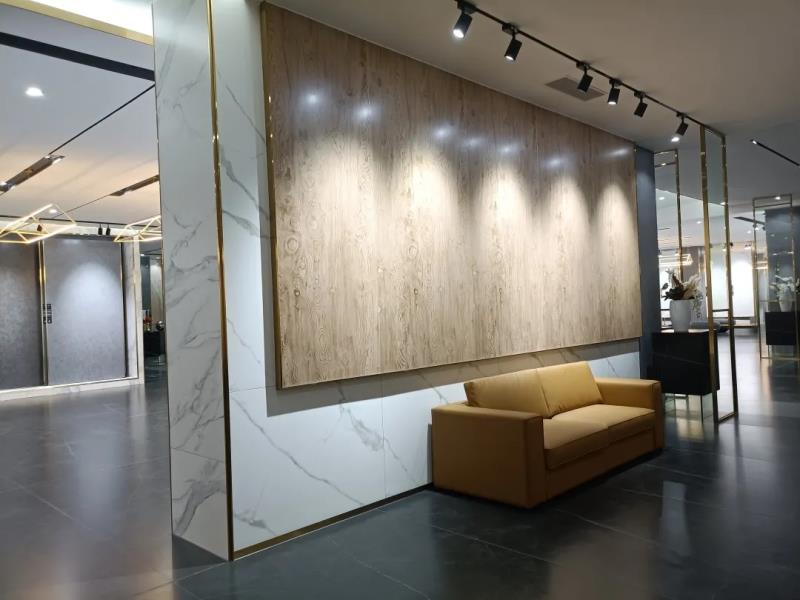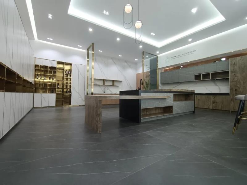 在广东中岩展厅内,《陶瓷信息》看到了琳琅满目的岩板产品以及多元的应用解决方案,从墙地面的铺贴应用,到橱柜、衣柜、岛台、餐桌、电视柜、隐形门等家具的跨界应用,《陶瓷信息》有被广东中岩超级质感全“岩”空间惊艳到。